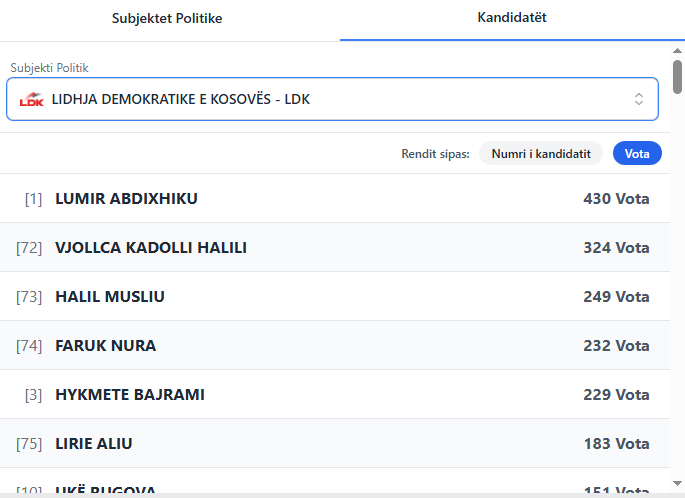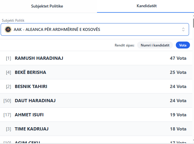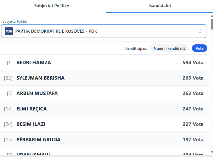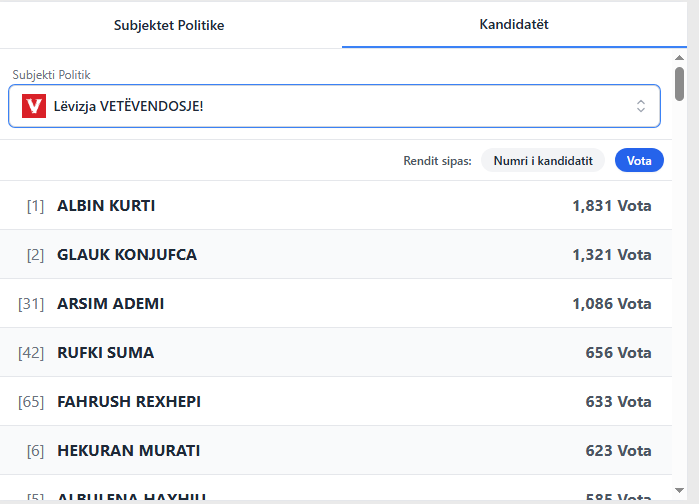 Sipas këtyre rezultateve këta janë top pesë kandidatët më të votuar të partive politike.