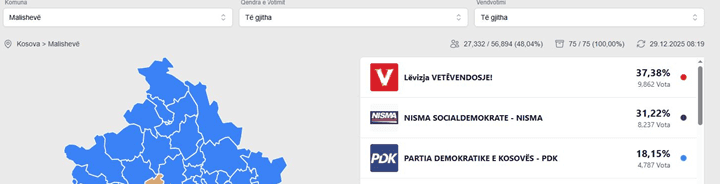 Në zgjedhjet e 28 dhjetorit, Lëvizja Vetëvendosje ka shënuar fitore të rëndësishme në komunën e Malishevës, e njohur tradicionalisht si bastion i NISMA-s.