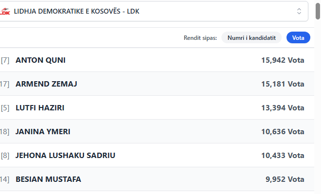 Janë numëruar 60% e votave për deputetë nga radhët e LDK.