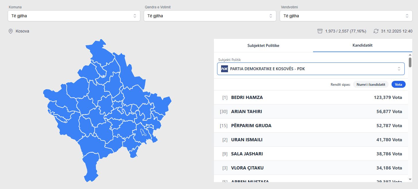 Sipas të dhënave të fundit të, emrat e njëjtë që kanë qenë në krye të listës së PDK-së, vazhdojnë të mbesin.