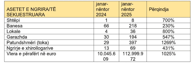 Po ashtu, sipas statistikave policore, në periudhën janar–nëntor të këtij viti janë ngrirë dhe sekuestruar asete në vlerë mbi 112 milionë euro, në kuadër të hetimeve për vepra të ndryshme penale.