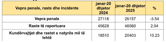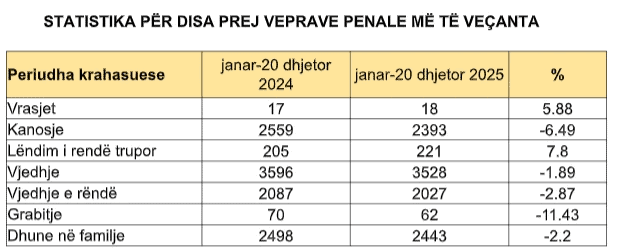 Policia e Kosovës ka bërë të ditur se gjatë periudhës janar–20 dhjetor janë iniciuar mbi 26 mijë raste për vepra penale, që përbën një rënie prej 3.54 për qind krahasuar me periudhën e njëjtë të vitit 2024.