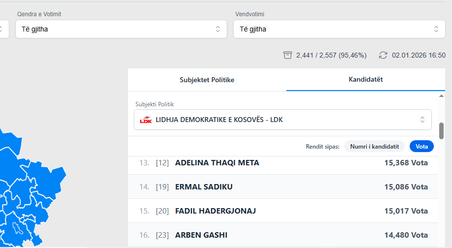 Teksa numërimi i votave për deputetë po shkon drejt fundit, gara në listën e LDK-së vazhdon të mbetet interesante.