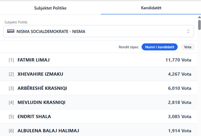 Kjo është renditja e disa prej më të votuarve në Nisman Social Demokrate, ku Limj prin me mbi 11 mijë vota.