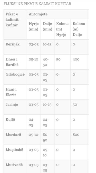 Aktualisht ka pritje deri në 50 minuta për të dalë nga Kosova nëpërmjet Dheut të Bardhë, 90 minuta në Merdar, ndërsa në pikat tjera situata është më eqetë.