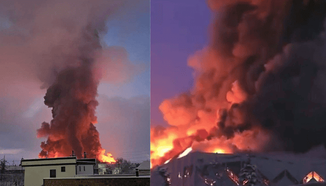 Nga fotografitë dhe videot e publikuara në rrjetet sociale, shihet se flakët kanë përfshirë të gjithë objektin, ndërsa tymi i dendur ka mbuluar qiellin.