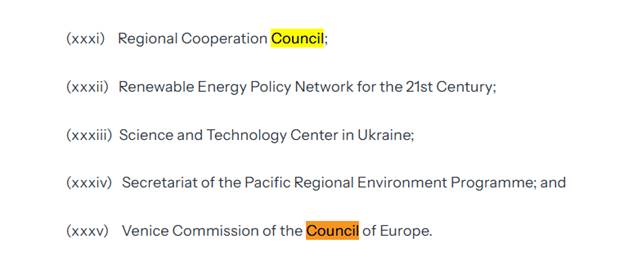 Shtetet e Bashkuara të Amerikës kanë njoftuar zyrtarisht tërheqjen nga një numër i madh i organizatave të ndryshme. Prej tyre, janë edhe Regional Cooperation Council (RCC) dhe Komisioni i Venecias i Këshillit të Evropës.