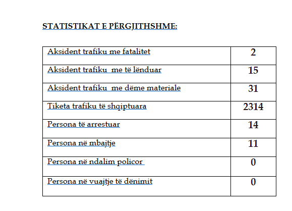 Gjatë kësaj kohe, po ashtu, kanë ndodhur mbi 40 aksidente trafiku, ku 15 kanë qenë me të lënduar, ndërsa, 31 me dëme materiale.