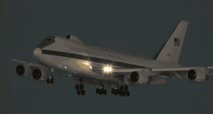 Të enjten në mbrëmje, avioni, i përdorur për më shumë se 50 vjet si qendër komande në raste emergjencash, u shfaq për herë të parë në një aeroport civil – Aeroportin Ndërkombëtar të Los Anxhelosit. Prania e tij shkaktoi një valë reagimesh dhe pyetjesh, për shkak të funksionit të tij si seli fluturuese për udhëheqjen politike dhe ushtarake amerikane në rast të një sulmi bërthamor.