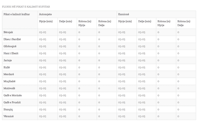 Sipas përditësimit të fundit nga Qendra Kombëtare për Menaxhimin e Kufijve, nuk ka pritje të gjata në pikat kufitare.