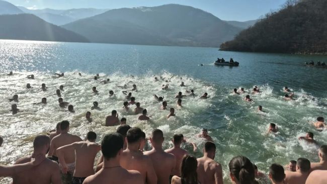 Në Liqenin e Ujmanit, sot është shënuar festa ortodokse e Bogojavljenjes me manifestimin tradicional të notimit për Kryqin e Shenjtë, ku qindra pjesëmarrës serbë u hodhën në ujërat e ftohta për ta gjetur kryqin.