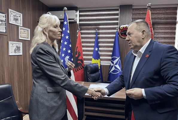 Carol Whitmore, Komandante e Përgjithshme e Veteranëve Amerikanë, e shoqëruar nga. Ryan Gallucci, Drejtor Ekzekutiv i Zyrës së kësaj organizate në Uashington i ka shkuar sot për vizitë OVL UÇK-së.