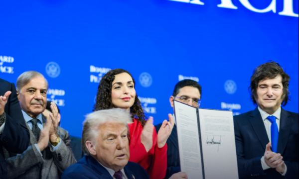 Shtëpia e Bardhë ka publikuar një fotografi nga ceremonia e nënshkrimit të Kartës së Bordit të Paqes, ku Kosova figuron si anëtare themeluese.