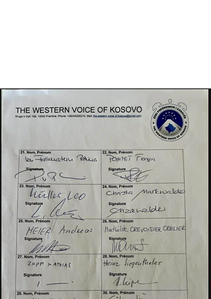 Më poshtë Rezoluta me 30 deputetë zviceran të nënshkruar.