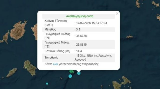 Lëkundjet sizmike patën një forcë prej 3.3 ballë të shkallës Rihter, teksa epiqendra ishte në Amorgos.
