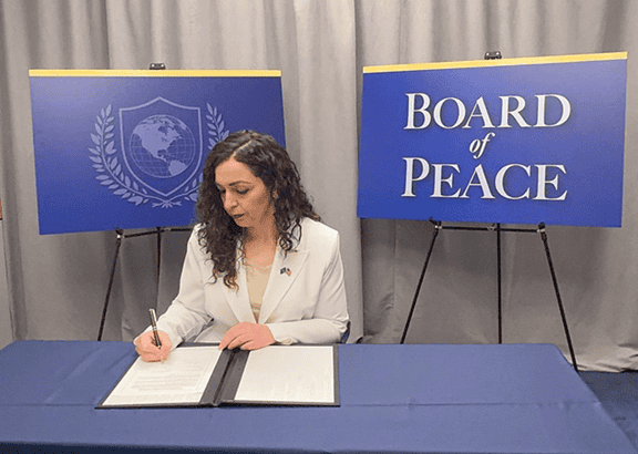 “Përgjatë takimit inaugurues të Bordit të Paqes, Presidentja Osmani pati mundësi të diskutonte me Presidentin e Shteteve të Bashkuara të Amerikës, Donald J. Trump dhe shumë zyrtarë të kabinetit të tij.