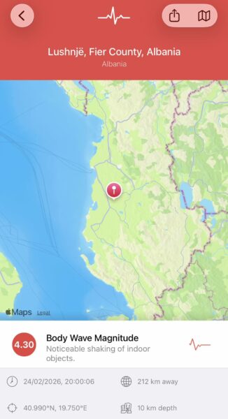 Një tërmet me magnitudë 4.3 është regjistruar tw martwn pranë qytetit të Lushnjë, në Shqipëri.