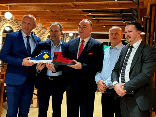 Në shenjë respekti dhe bashkëpunimi kombëtar, delegacioni i AKB-së i dhuroi pronarit të resortit një palë këpucë të qëndisura me flamurin e Kosovës dhe të Shqipërisë, prodhim vendor “Made in Kosova” nga kompania Solid me seli në Suharekë.
