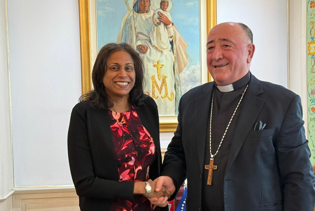 Në rezidencën e Ipeshkvisë në Prishtinë, Ipeshkvi Imzot Dodë Gjergji priti sot në një vizitë zyrtare Shkëlqesinë e Saj, Anu Prattipati, e ngarkuar në detyrë e Ambasadës së Shteteve të Bashkuara në Kosovë.
