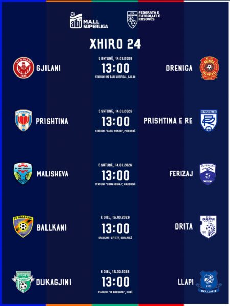 Në duelet tjera do të takohen Gjilani – Drenica, Malisheva – Ferizaj dhe Dukagjini – Llapi.