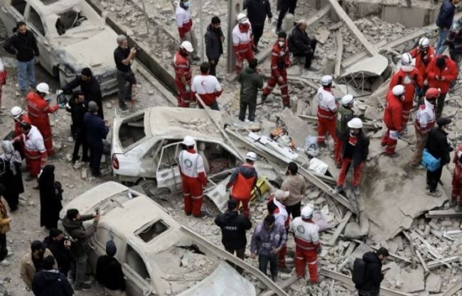 Punonjësit e Gjysmëhënës së Kuqe iraniane po kërkojnë për të mbijetuar nën rrënojat e ndërtesave të dëmtuara, pasi sulmet ajrore goditën Teheranin të hënën.