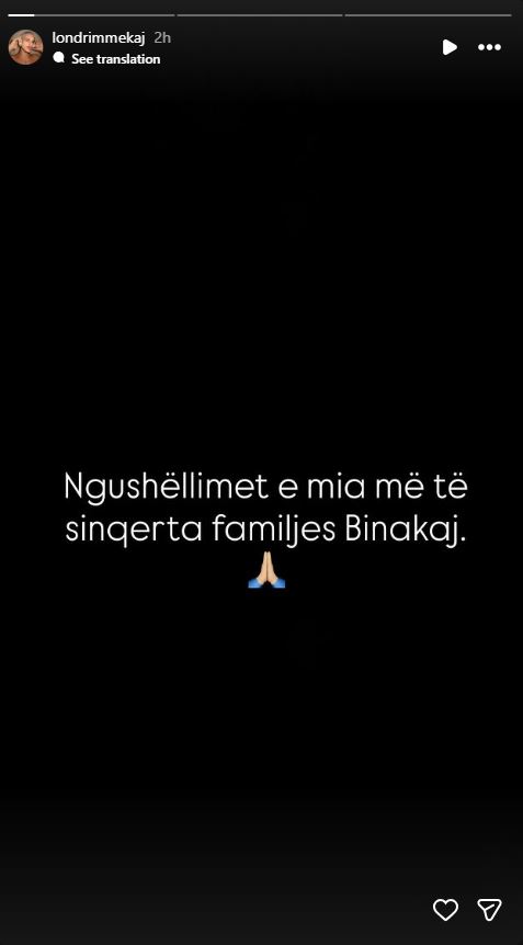 “Ngushëllime e mia më të sinqerta familjes Binakaj”, ka shkruar Londrimi në Instagram