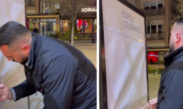 Në rrjetet e sociale, është ndarë një video ku shihet një qytetar teksa mbulon pankartën ku ishte shkruar për Masakrën në burgun e Dubravës.