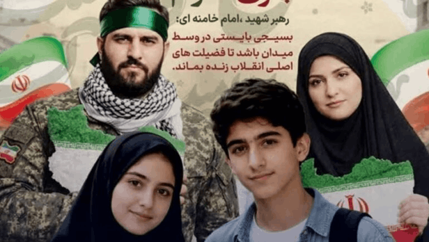 Një thirrje e Basijit për rekrutim, e publikuar në mediat iraniane për programin Për Iranin, shfaqte fëmijë që shihet se janë në grup-moshën e synuar të projektit, duke qëndruar mes flamujve iranianë teksa raketat e djegura rrëzohen nga qielli.