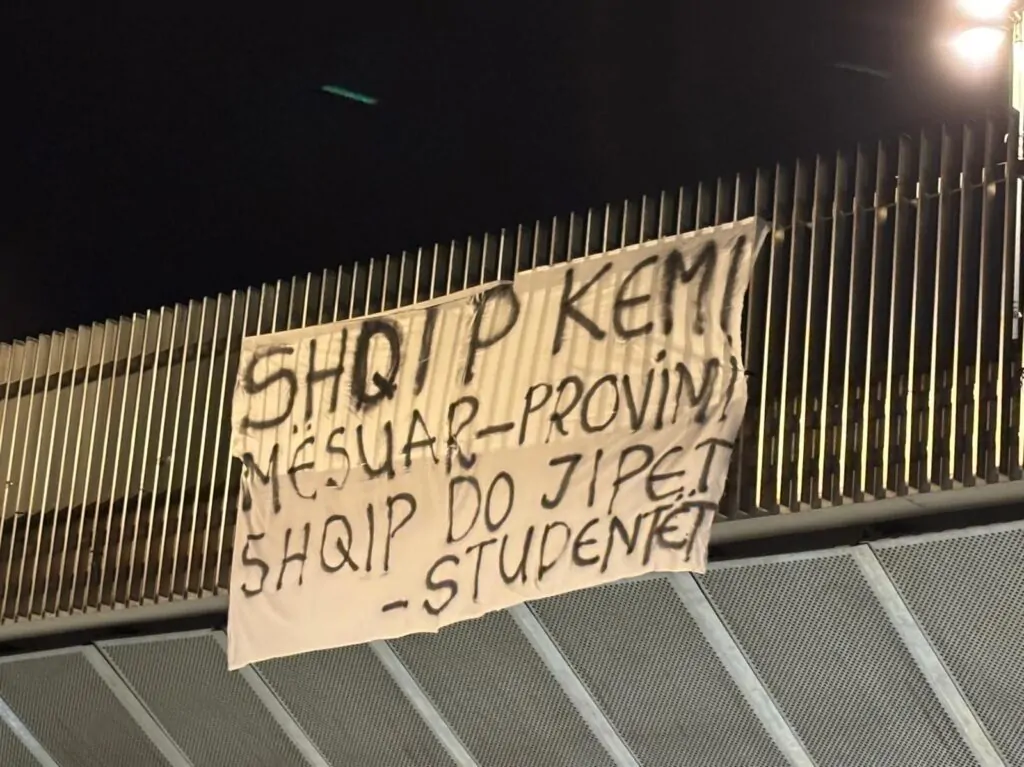 Në pankartat e vendosura, mesazhi është i qartë: “Shqip kemi mësuar – provimin shqip do japim”, duke shprehur pakënaqësinë dhe kërkesën për respektimin e të drejtës për arsimim në gjuhën amtare.
