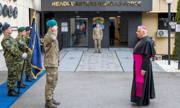 Komandanti i misionit të udhëhequr nga NATO, KFOR, Gjeneralmajor Özkan Ulutaş, mirëpriti Shkëlqesinë e Tij Gian Franco Saba, Arqipeshkëv i Ordinariatit Ushtarak të Italisë të Kishës Katolike Romake, në selinë e KFOR-it në Camp Film City në Pristina, me rastin e urimeve të tij për Pashkë për kontingjentin italian.