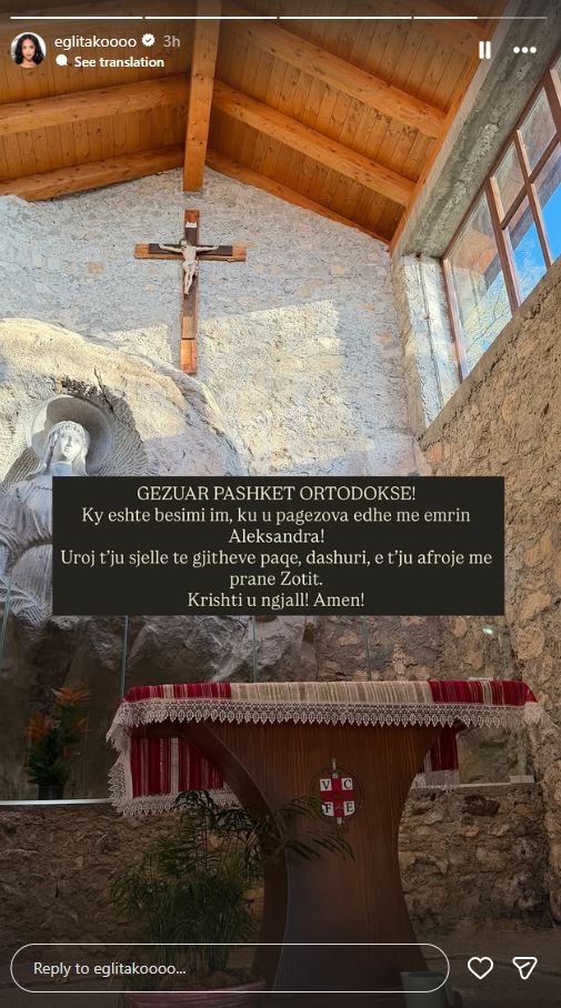 Këngëtarja e njohur, Egli Tako ka uruar Pashkët Ortodokse, duke thënë se ky është besimi i saj.