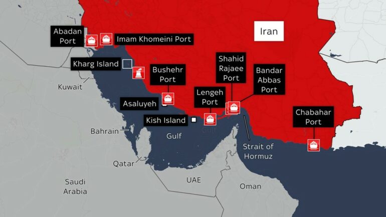 Presidenti amerikan Donald Trump fillimisht tha në rrjetet sociale se marina amerikane do të parandalonte kalimin e “çdo dhe të gjitha” anijeve nëpër Ngushticën e Hormuzit, por ushtria amerikane më vonë sqaroi se do ta zbatonte bllokadën “në mënyrë të paanshme” ndaj anijeve që hyjnë dhe dalin nga portet iraniane