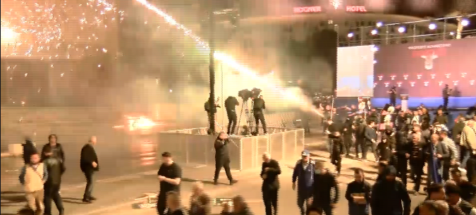 Me përfundimin e fjalimit të kryedemokratit Sali Berisha, disa protestues kanë hedhur fishekzjarre drejt godinës së Kryeministrisë, duke përsëritur një skenar të mëparshëm të tubimeve të opozitës.