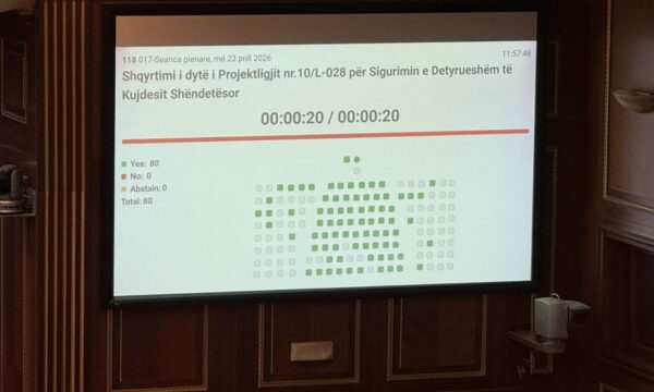 Me 80 për, asnjë kundër dhe asnjë abstenim, Kuvendi ka miratuar Projektligjin për Sigurimin e Detyrueshëm të Kujdesit Shëndetësor,